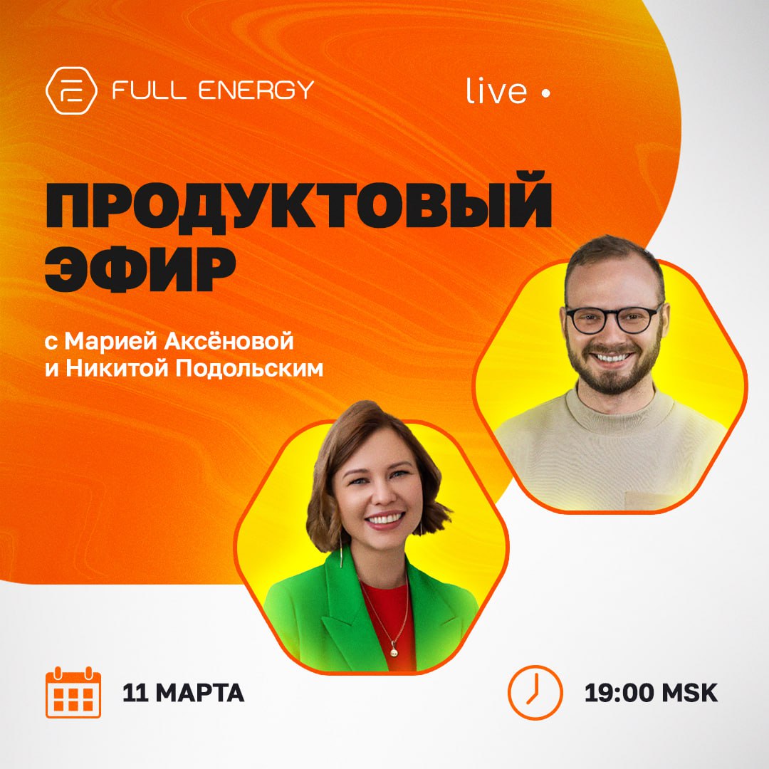 Продуктовый эфир с Марией Аксёновой и Никитой Подольским Начинаем продуктовый эфир с Марией Аксёновой и Никитой Подольским через час! Приготовьтесь…