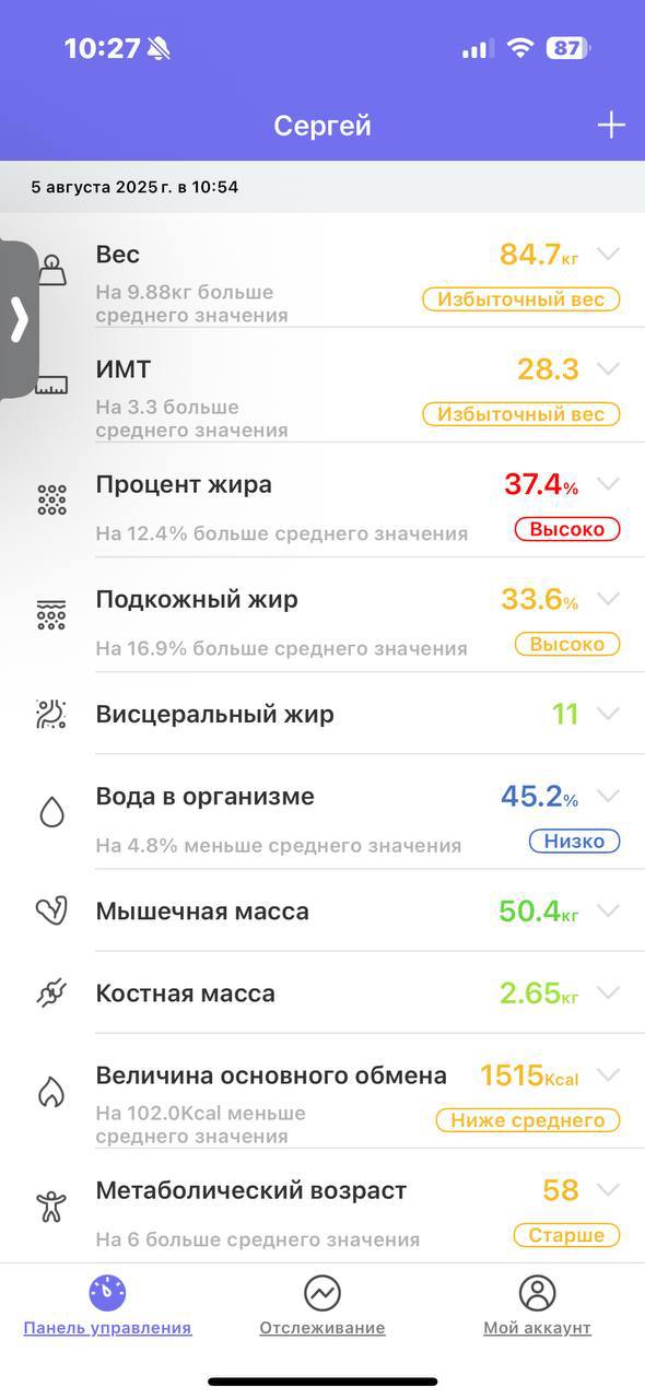 Купил себе весы Tefal, которые отображают твоё состояние здоровья в плане веса, жира, влаги в организме и так далее. Первый…
