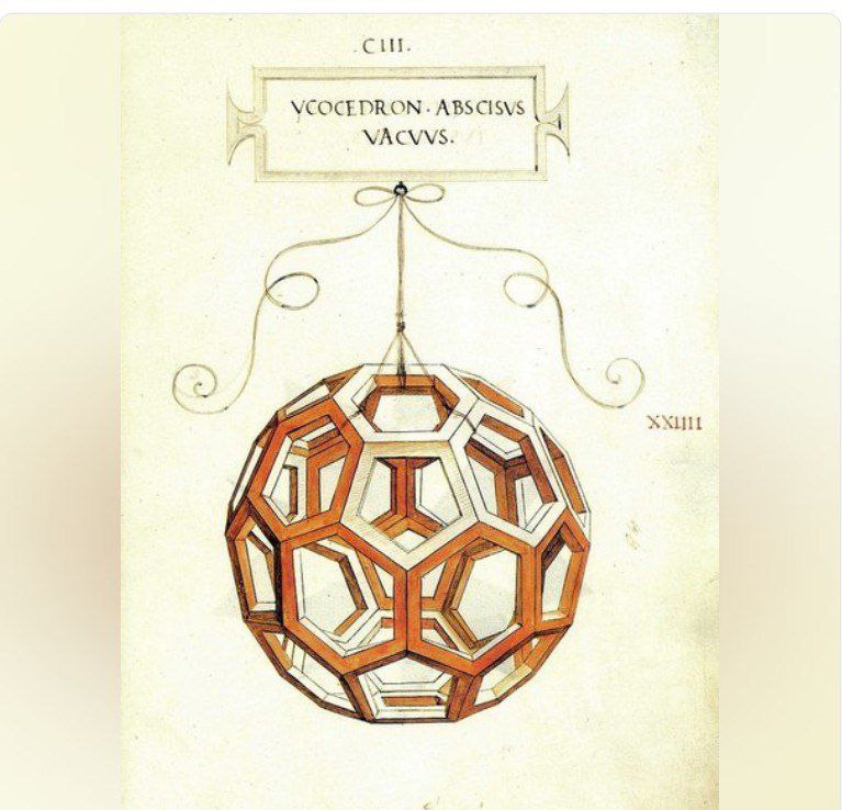 Прообраз фуллерена Рисунок Леонардо Да Винчи. Иллюстрация к изданию «О божественной пропорции», автор Лука Пачоли. 1498 г.